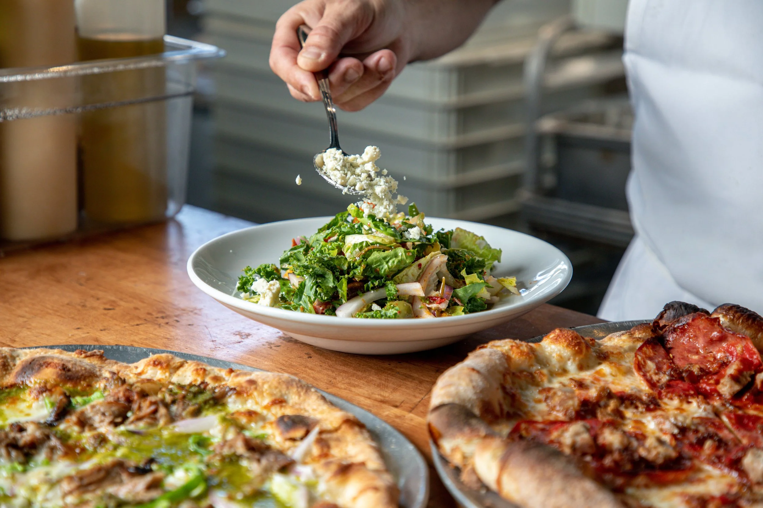 THE menu View PDF versions here. Uptown | Lakeview ANTIPASTI $14 GARLIC KNOTS aged provolone fonduta $14 $23 WOOD-ROASTED CAULIFLOWER sea salt & whipped feta $23 $19 BAKED ZITI bolognese & mozzarella $19 $16 WOOD ROASTED WINGS blue cheese or ranch $16 $13 MEATBALLS polenta, arrabbiata, parmesan $13 $16 SPAGHETTI CARBONARA bacon, green onion, black pepper, egg $16 INSALATE $14 CAESAR cheese crostini with choice of anchovies $14 $18 ITALIAN CHOP SALAD kale & little gem, tomatoes, gorgonzola, olives, salami, red onion, peppadew vinaigrette $18 $16 ARUGULA roasted fall squash, toasted pumpkin seeds, goat cheese, aged balsamic $16 PIZZE ADD-ONS: premium - $6 prosciutto, local mushrooms, house meatballs, salami, gluten-free crust proteins - $4 ham, fennel sausage, bacon, anchovies, pepperoni other - $2 olives, egg, arugula, roasted garlic, jalapeno, spicy honey $20 MARGHERITA tomato sauce, fresh mozzarella, basil $20 $23 TUTTO CARNE tomato sauce, mozzarella, fennel sausage, salami, bacon $23 $19 WHITE ricotta, mozzarella, roasted garlic, oregano, basil $19 $21 CALABRESE san marzano tomato, mozzarella, spicy salami, olives, capers, oregano $21 $24 FUNGI oyster mushrooms, smoked mozzarella, truffle salami, egg $24 $20 MORTADELLA ricotta, sliced Italian chilled cured pork , honey, onion, basil, pistachios, Firelli Hot Sauce $20 $22 HEIRLOOM TOMATO garlic, extra virgin olive oil, basil $22 $20 PEPPERONI $20 $16 CHEESE $16 dolci $17 BANANA NUTELLA STROMBOLI $17 $14 CINNAMON KNOTS $14 $8 CANNOLI DISTRUTTI ricotta cream, cannoli shells, pistachio, chocolate chips $8 $7 GELATO $7 ORDER NOW